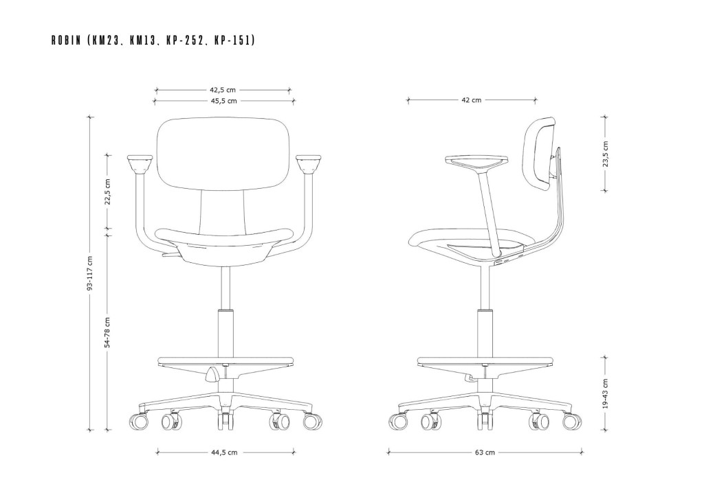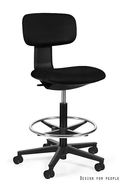UNIQUE Robin munkaszék, lábtartó gyűrűvel, fekete váz, fekete kárpit, karfával