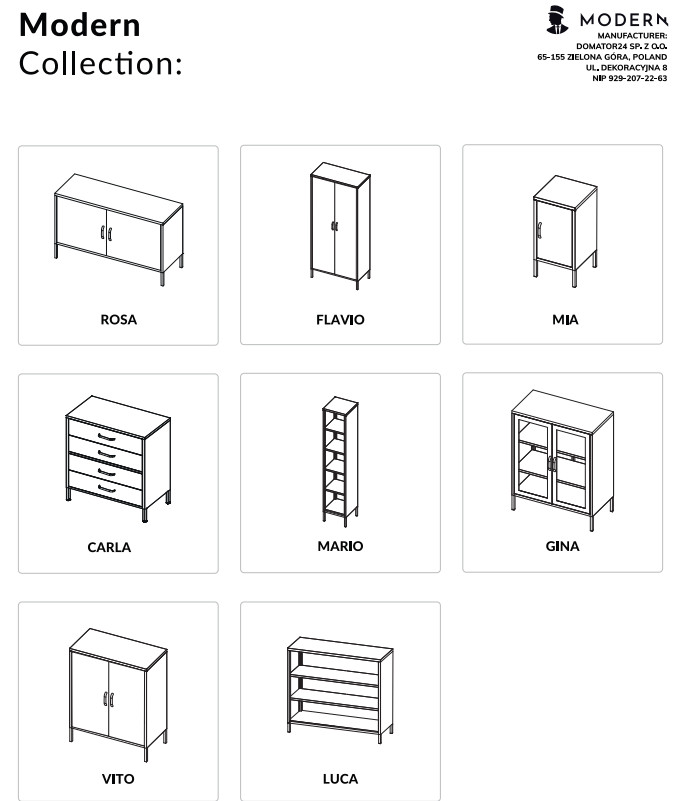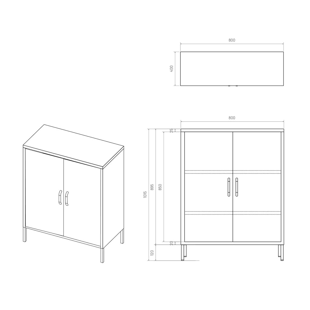 A VITO polcos kis szekrény alján állítható lábakat helyeztünk el. Ezeknek köszönhetően csupán néhány pillanat alatt kiegyenlítheti a szekrényt, hogy kiküszöbölje az ingatagságát, ha a padló, amelyen elhelyezi, egyenetlen. A lábak állítási tartománya 3 cm.