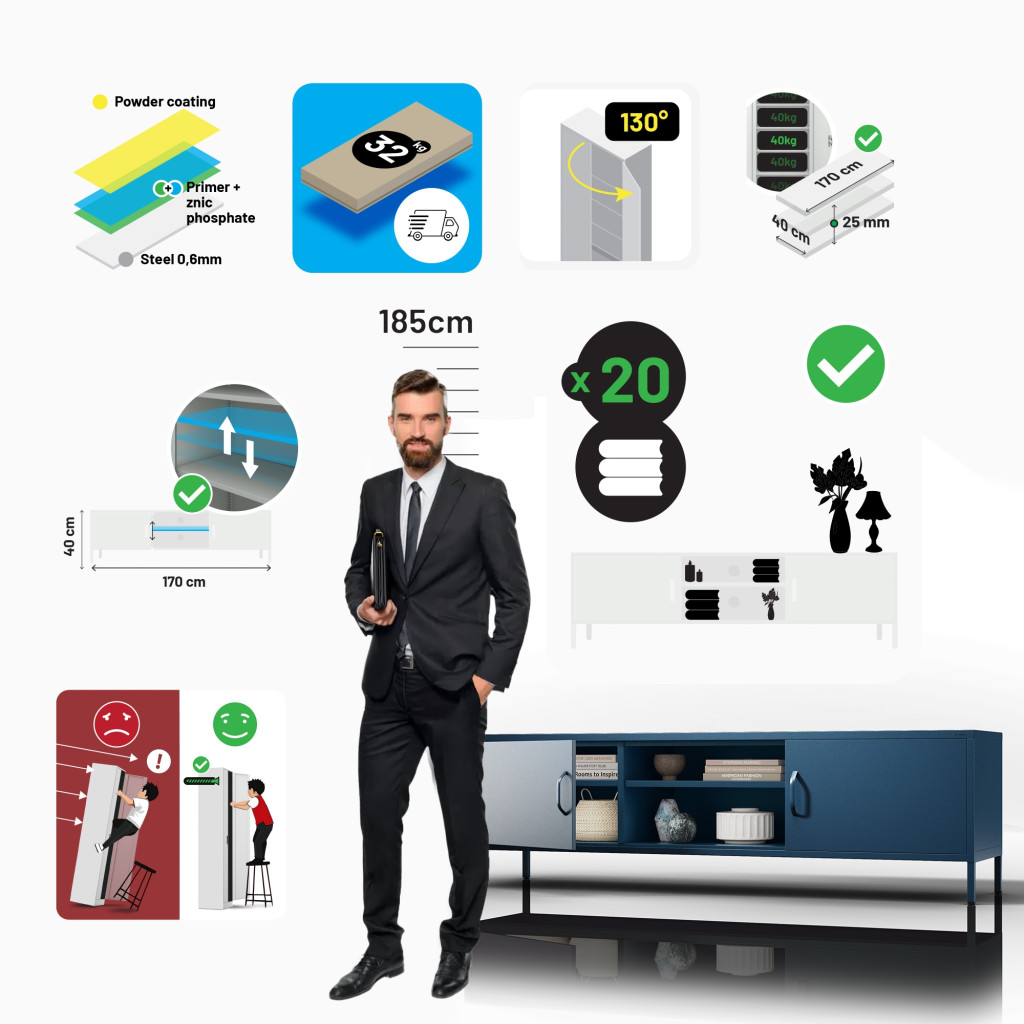 JAN NOWAK XL ROSARIA TV szekrény, 1700 x 400 x 500 mm, sötétkék, kiárusítás