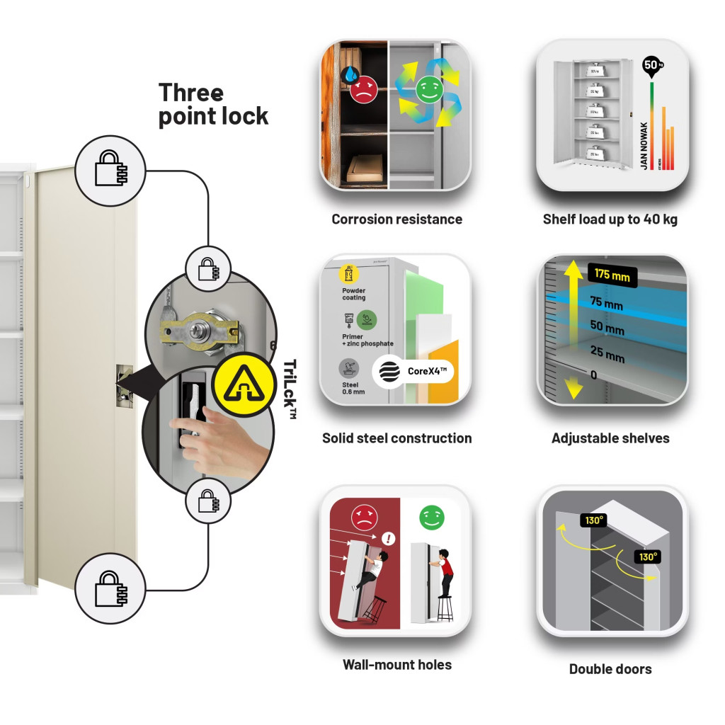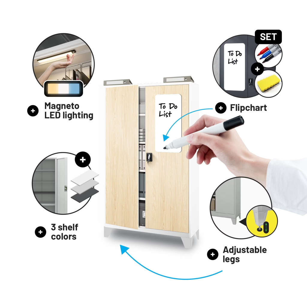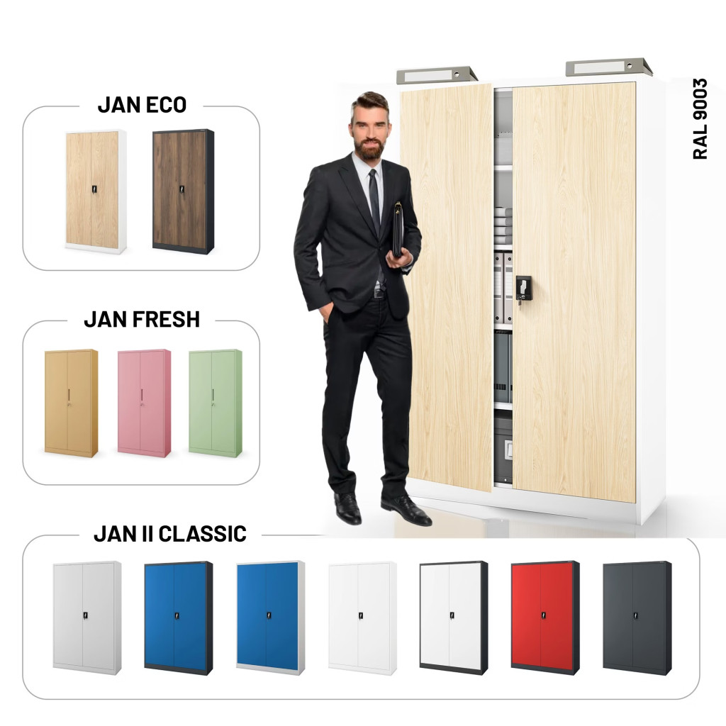 JAN NOWAK JAN II fém iratszekrény 1150x1850x400, modell fehér-sonoma tölgy