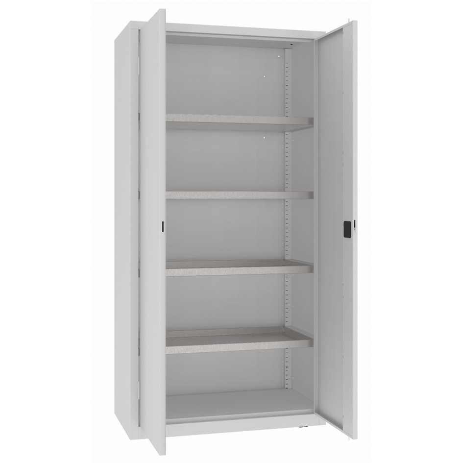 Az MSW vegyszerszekrényeket alapfelszereltségként speciális, zárt, horganyzott polcokkal szállítjuk, amelyek egyenként 60 kg teherbírásúak. A szekrények hárompontos zárral és fogantyúval ellátott szárnyas ajtókkal rendelkeznek. Kétféle magassági és kétféle szélességi változatban kaphatók.