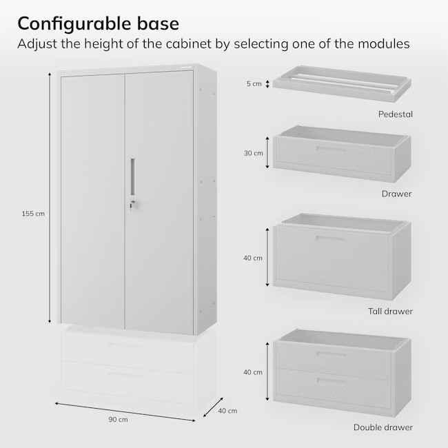 JAN NOWAK Megan fém moduláris multifunkcionális szekrény fiókkal 1850x900x400 mm, fehér
