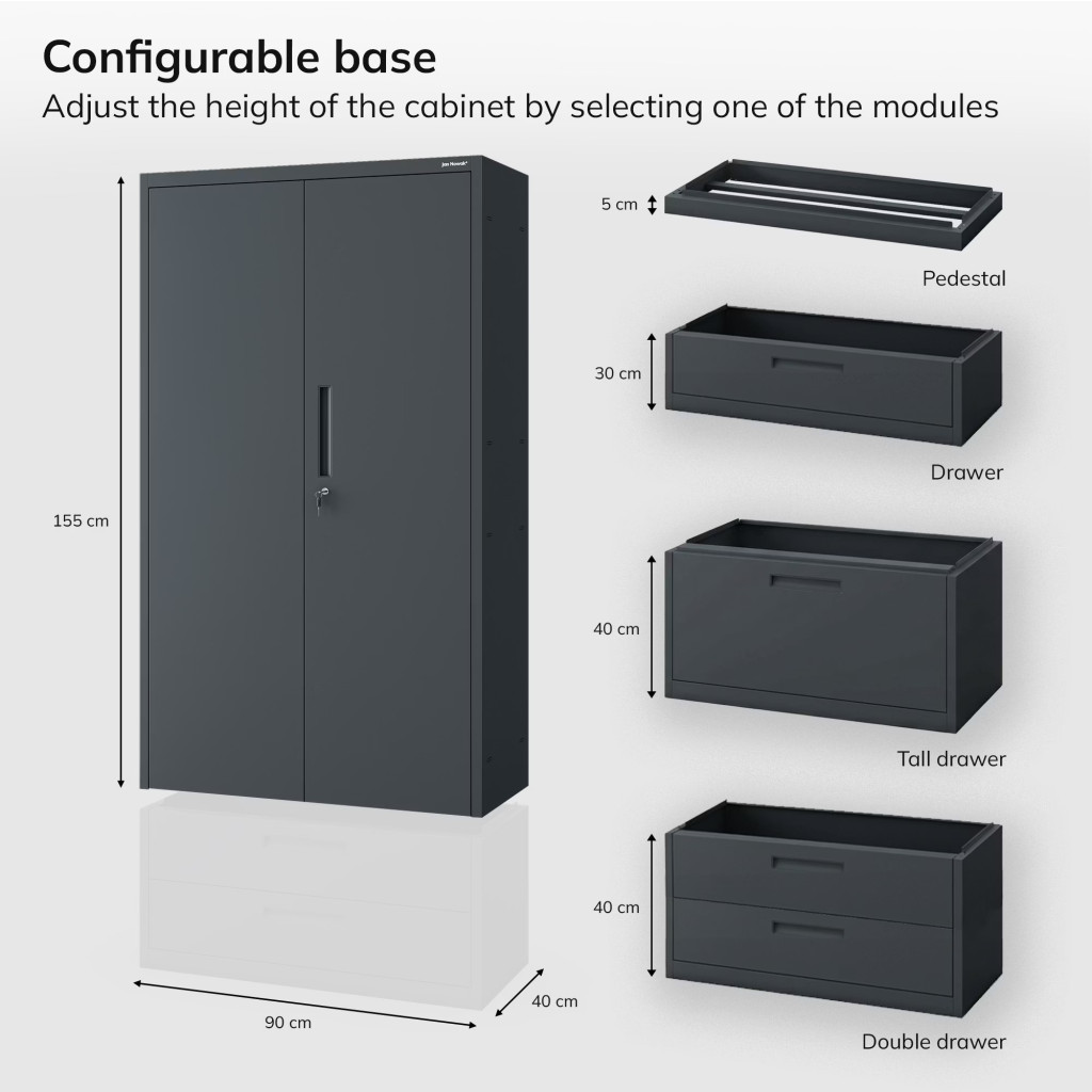 JAN NOWAK Megan fém moduláris multifunkcionális szekrény fiókkal 1850x900x400 mm, fekete