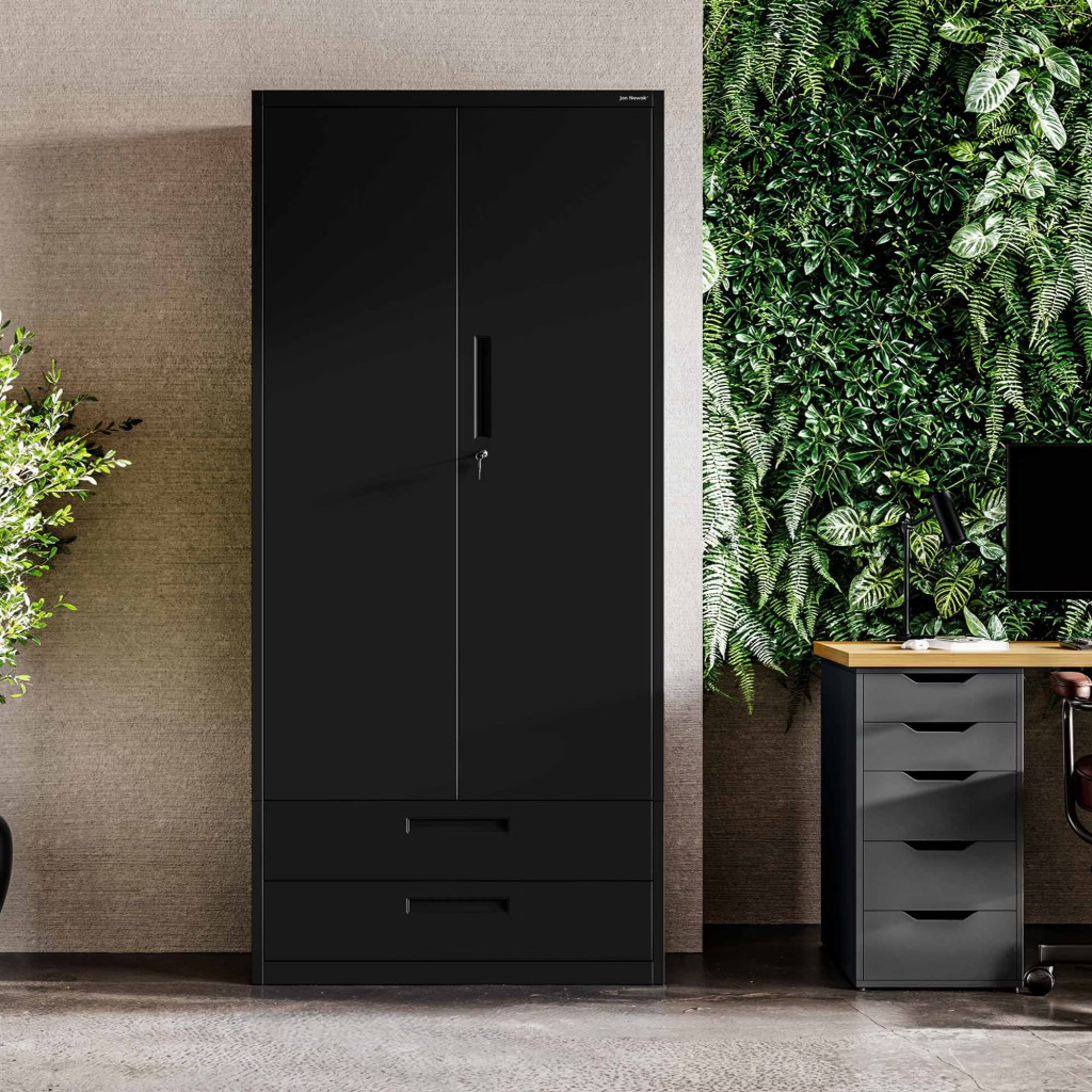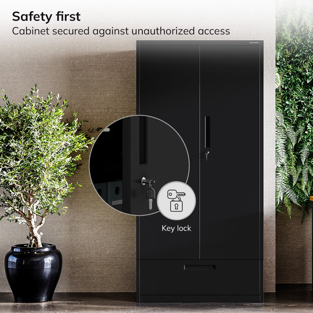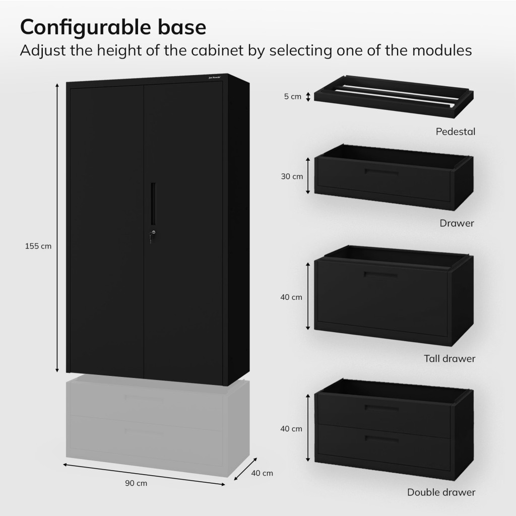 JAN NOWAK Megan fém moduláris multifunkcionális szekrény két fiókkal 1950x900x400 mm, fekete