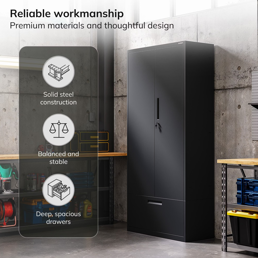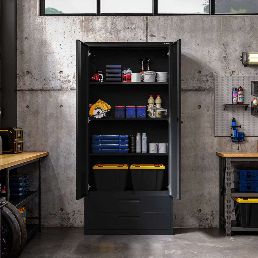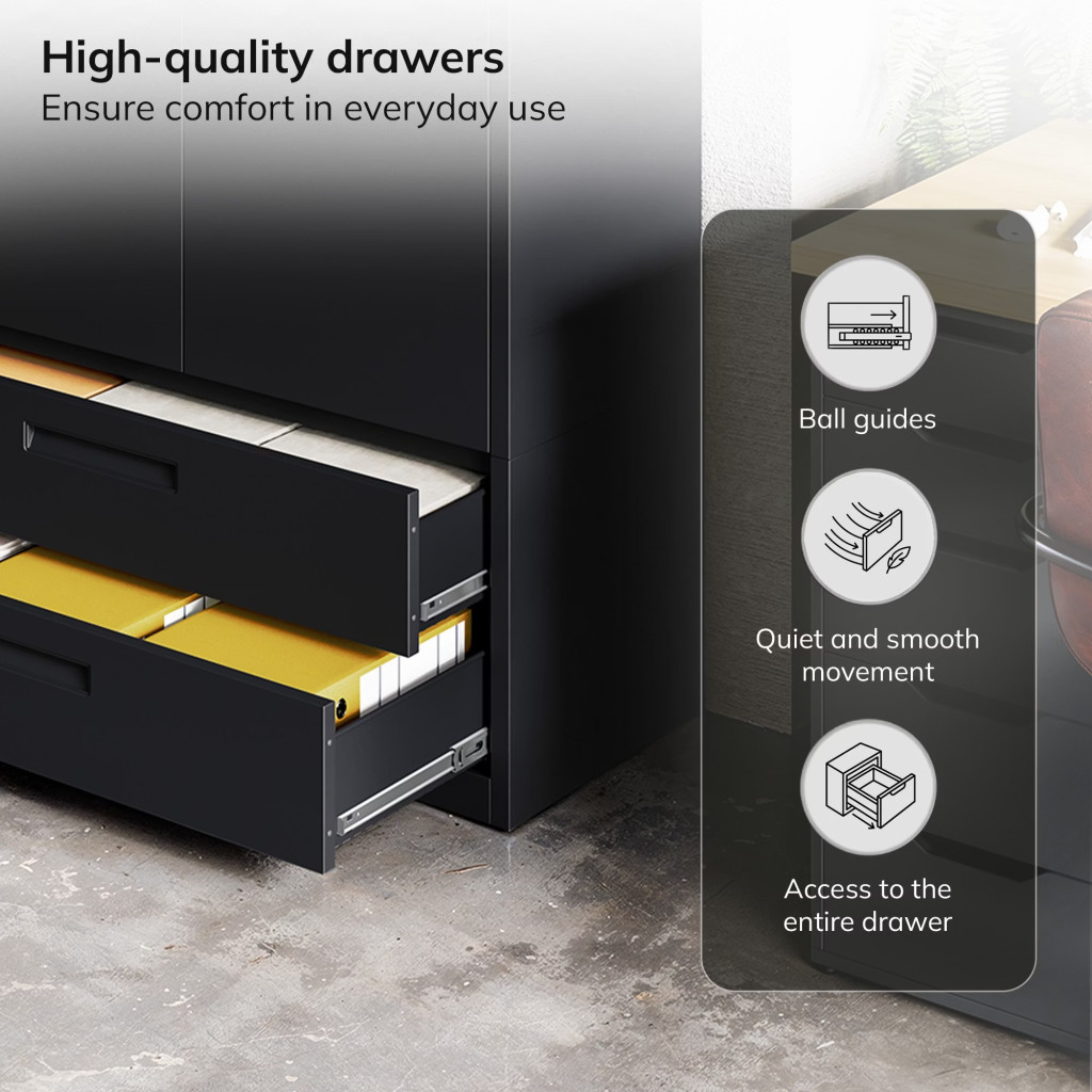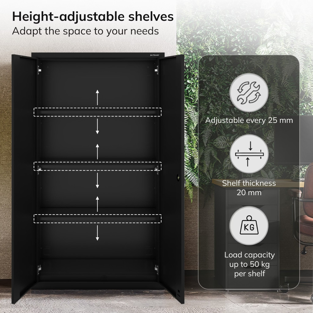 JAN NOWAK Megan fém moduláris multifunkcionális szekrény két fiókkal 1950x900x400 mm, fekete