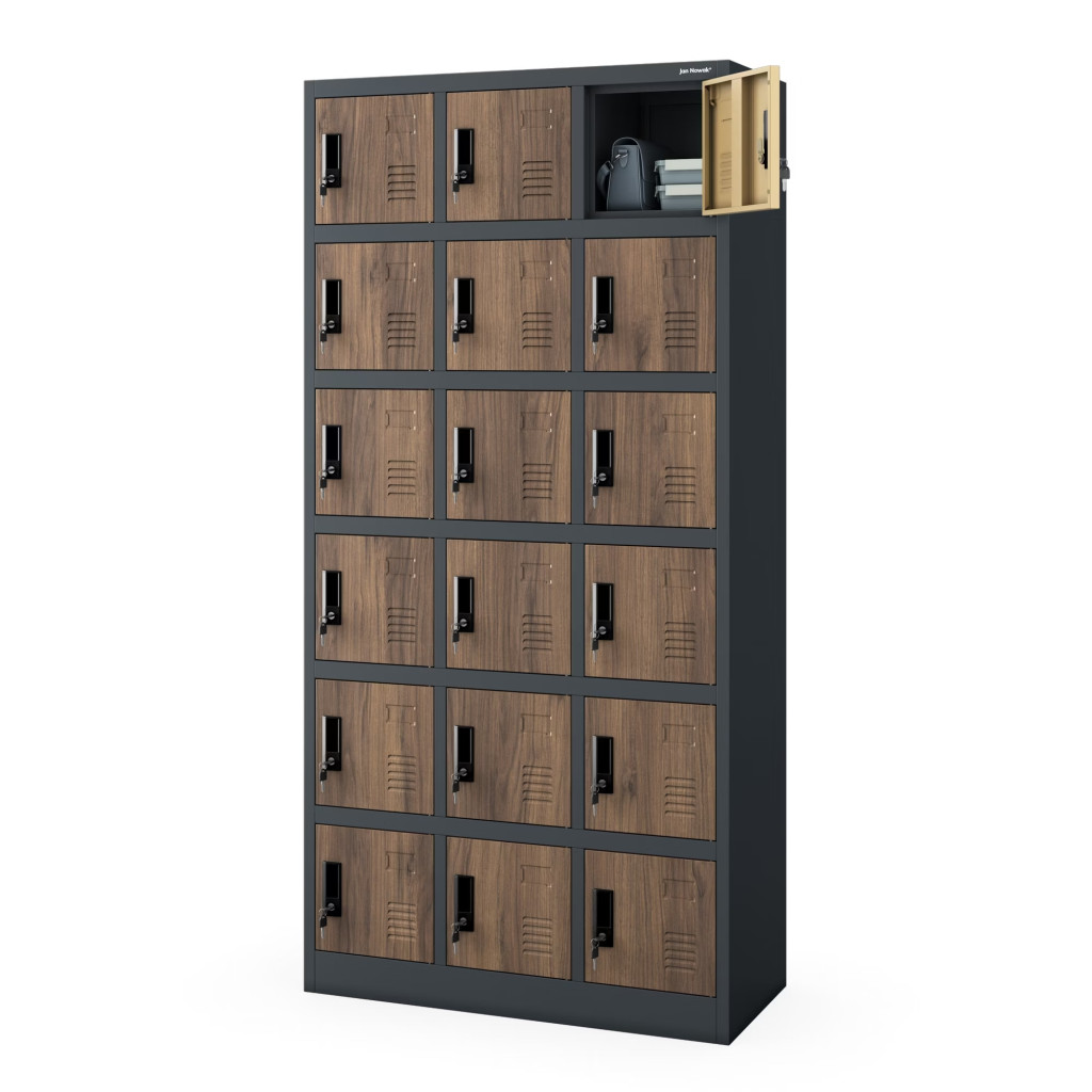 JAN NOWAK KAROL fém öltözőszekrény, 18 rekeszes, 900x1850x400, Eco Design: antracit/dió