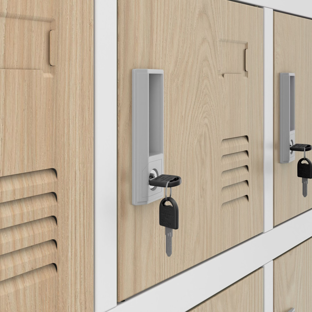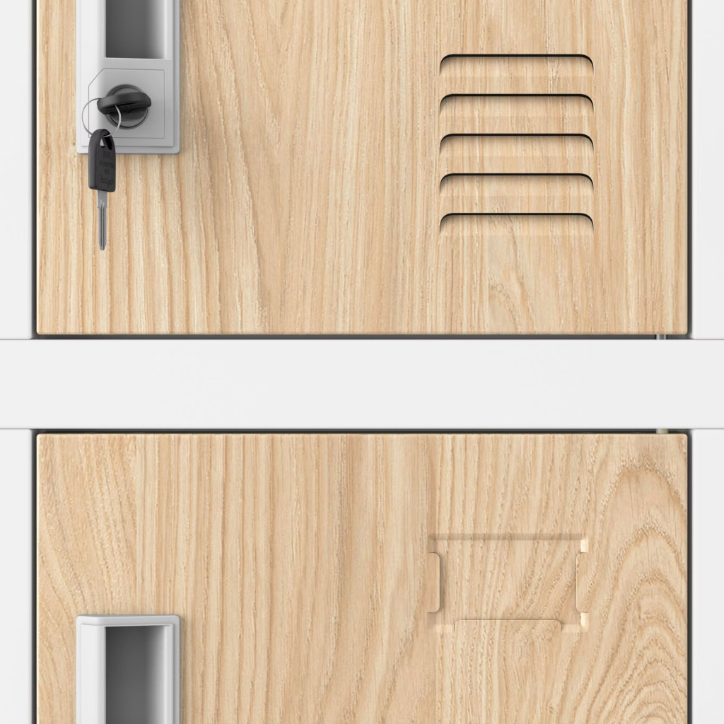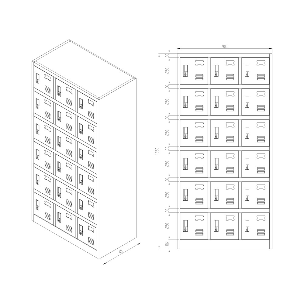 JAN NOWAK KAROL fém öltözőszekrény, 18 rekeszes, 900x1850x400, Eco Design: fehér/sonoma tölgy