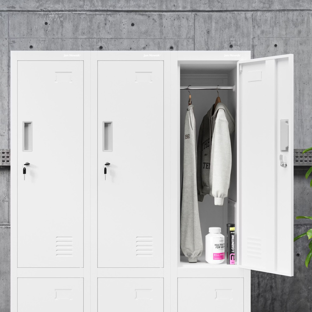 JAN NOWAK BARTEK 1 plus pléh öltözőszekrény lábakon, 2 rekeszes 292 × 1720 × 450, fehér