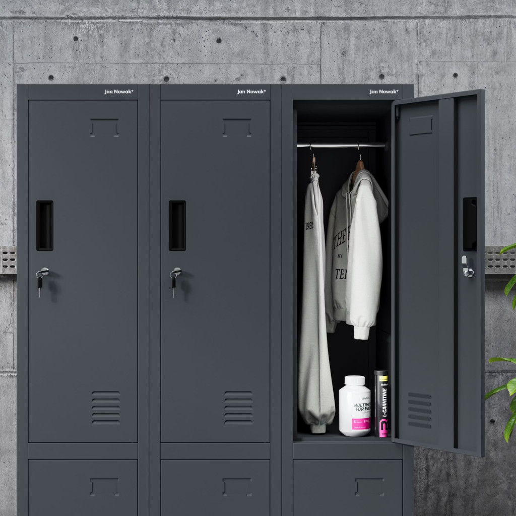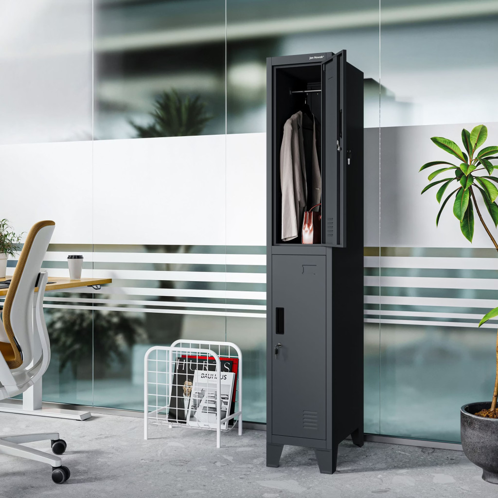 JAN NOWAK BARTEK 1 plus pléh öltözőszekrény lábakon, 2 rekeszes 292 × 1720 × 450, antracit