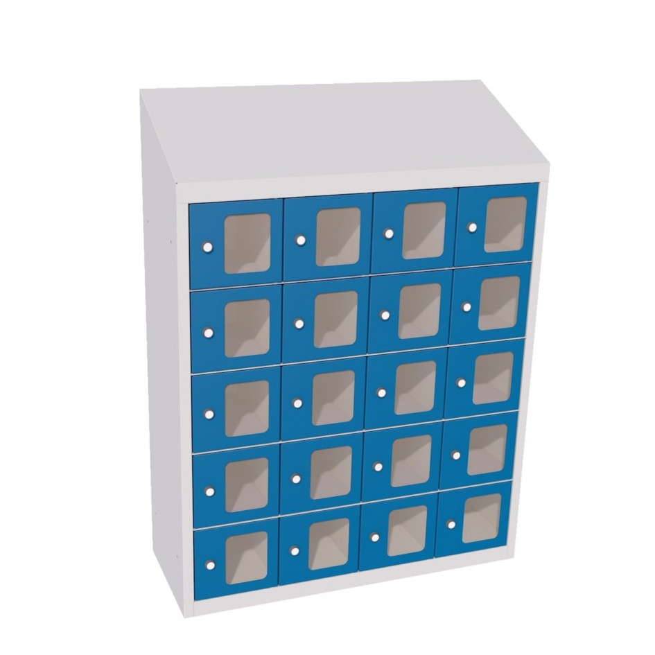 SUS 245 Wp kisrekeszes értékmegőrző szekrény, plexiajtókkal 20 rekesz