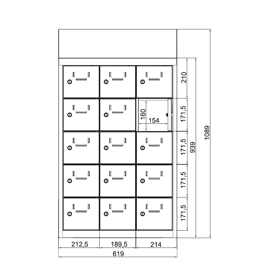 SUS 255 W kisrekeszes értékmegőrző szekrény, 25 rekesz