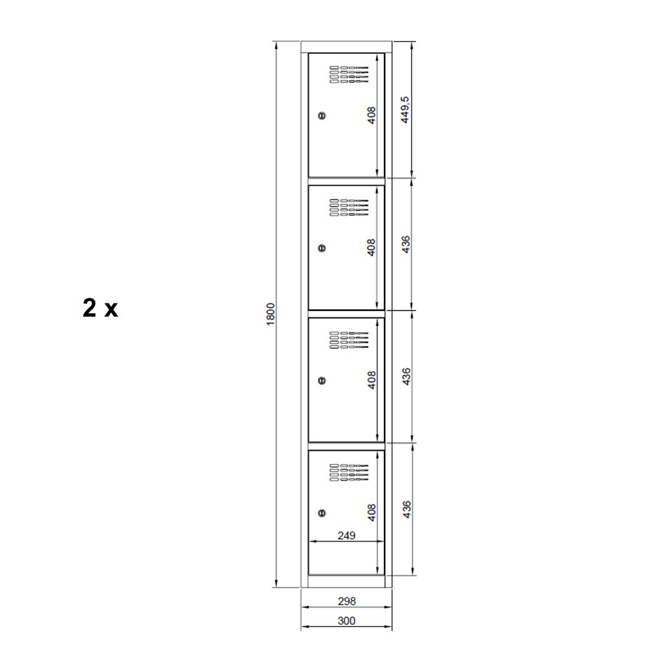 SUS 334 Wn fém szekrény, kisrekeszes, rövidajtós, lábazattal