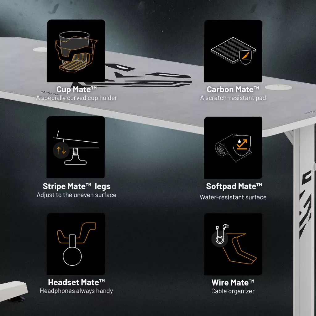 DIABLO X-Mate 1400 gamer asztal, 140x60x75 cm, fehér