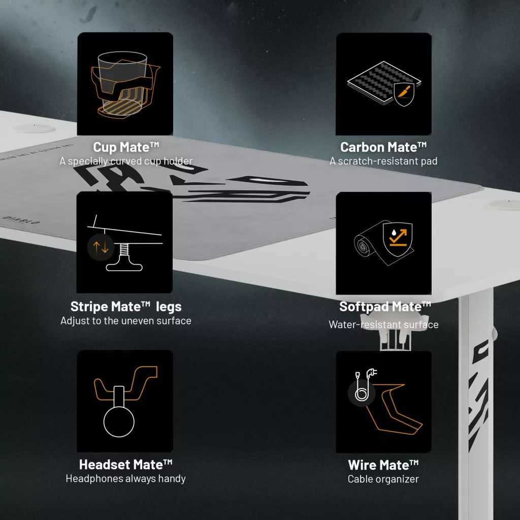 DIABLO X-Mate 1600 gamer asztal, 160x75x75 cm, fehér