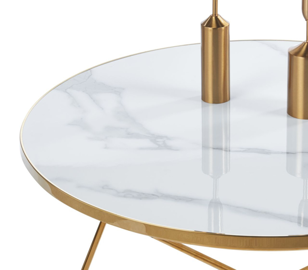 L12-FX kerek márványmintás dohányzóasztal, fehér