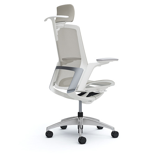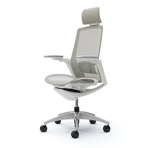 Okamura Finora prémium ergonomikus irodai szék - fehér váz, króm keret, szürke háló