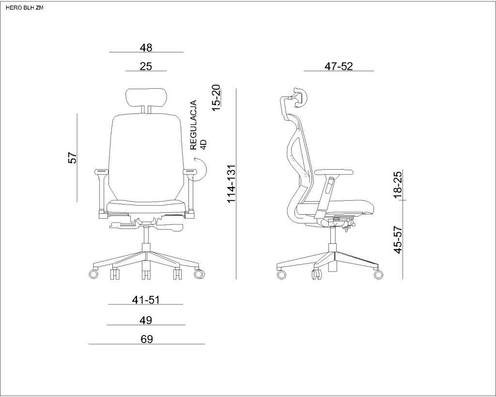 Kevés szék büszkélkedhet valódi 4D kartámasszal: a Hero esetében nemcsak a magasságot, hanem a támasz mélységét, szélességét és vízszintes dőlésszögét is szabályozhatja. Ez biztosítja, hogy a könyök és az alkar bármilyen munkapozícióban (gépelésnél, olvasásnál vagy pihenésnél) ideális helyzetben legyen, jelentősen csökkentve a vállöv feszültségét.